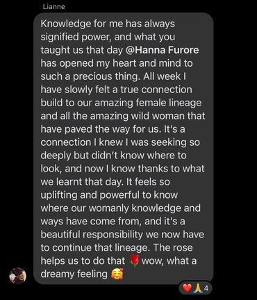 "Thank you, Hannah, for such a soul-nourishing Rose Retreat. It felt like being held in a space where my heart could exhale and remember its own wisdom.